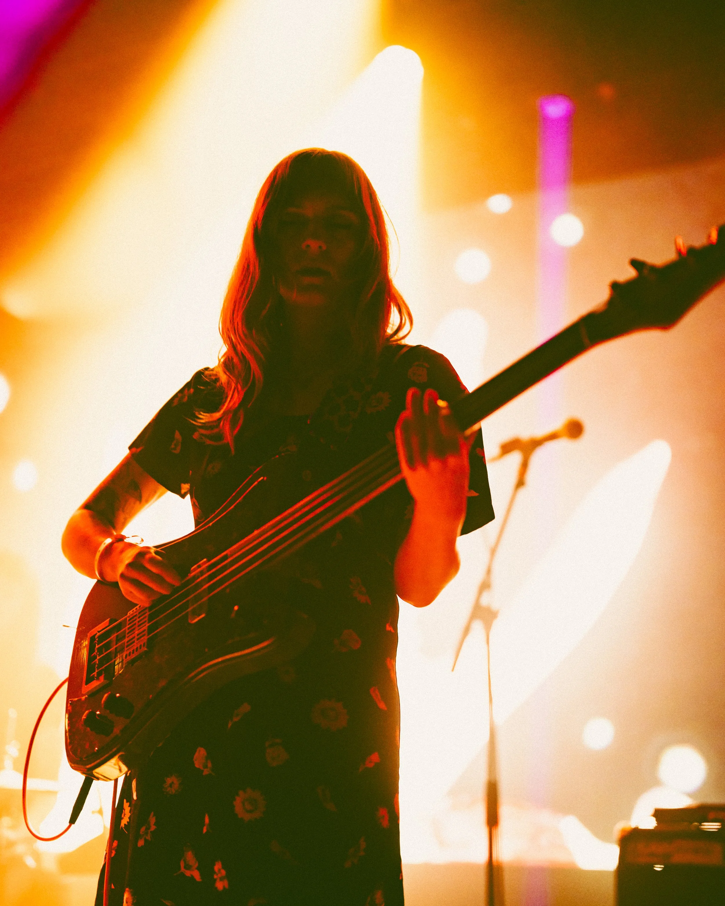 “New Beginning” from Excess is a high-spirited classic from the group– it was another major highlight of the set, with Glaudini’s jarring and awesome synth stabs cutting in mid-verse. Bassist Halle Saxon took an opportunity to say “Fuck ICE”— its always refreshing to see a band use their platform to stay true to themselves.