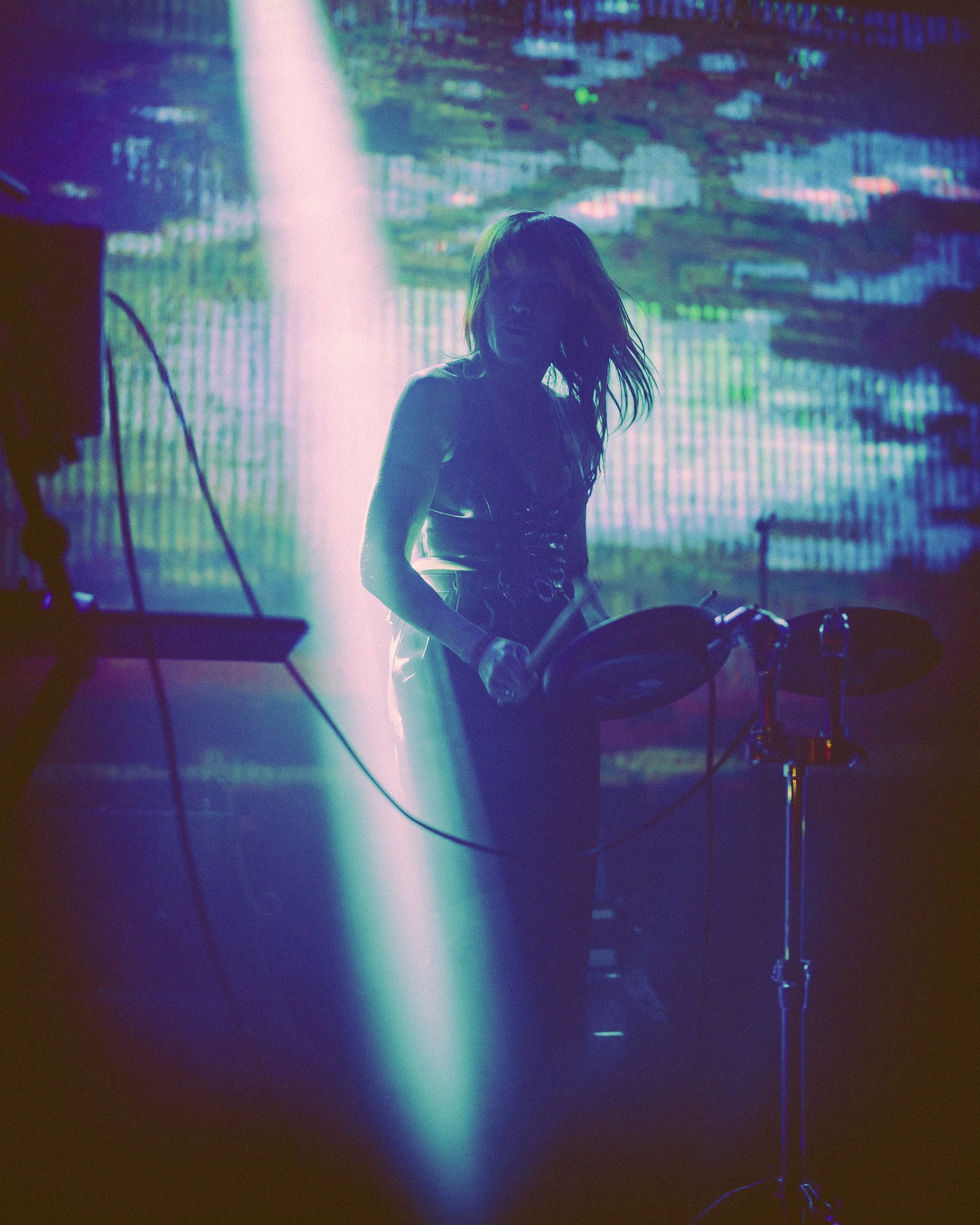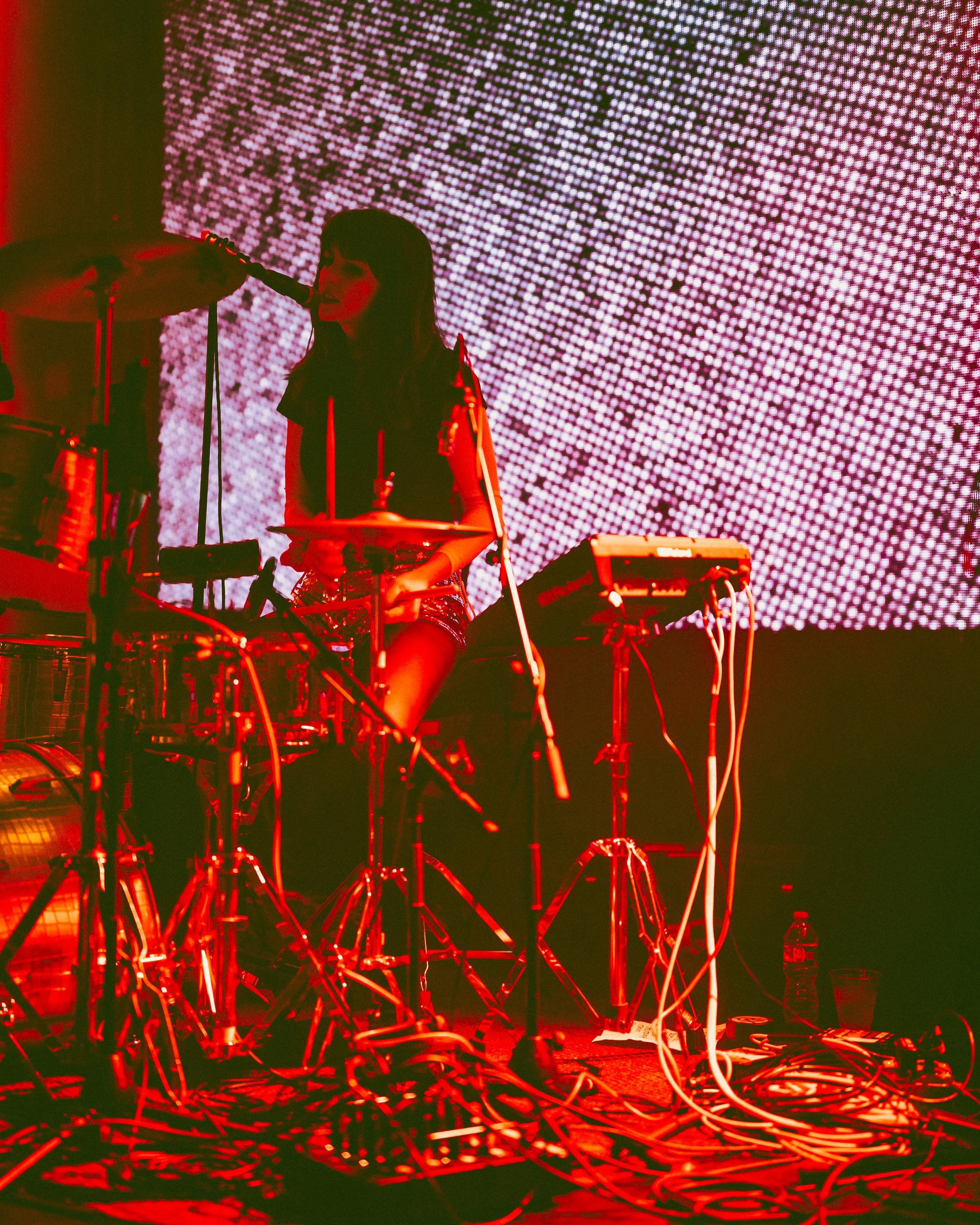 Drummer Lola Dompé got a real chance to shine with “Automaton”, which was extremely fun, groovy and campy in the best way. As I looked around during this number, I could see that the crowd was dancing extra silly to this one– there was nothing but extremely good vibes all around. Glaudini engaged in some fantastic laser-beam synth sounds.