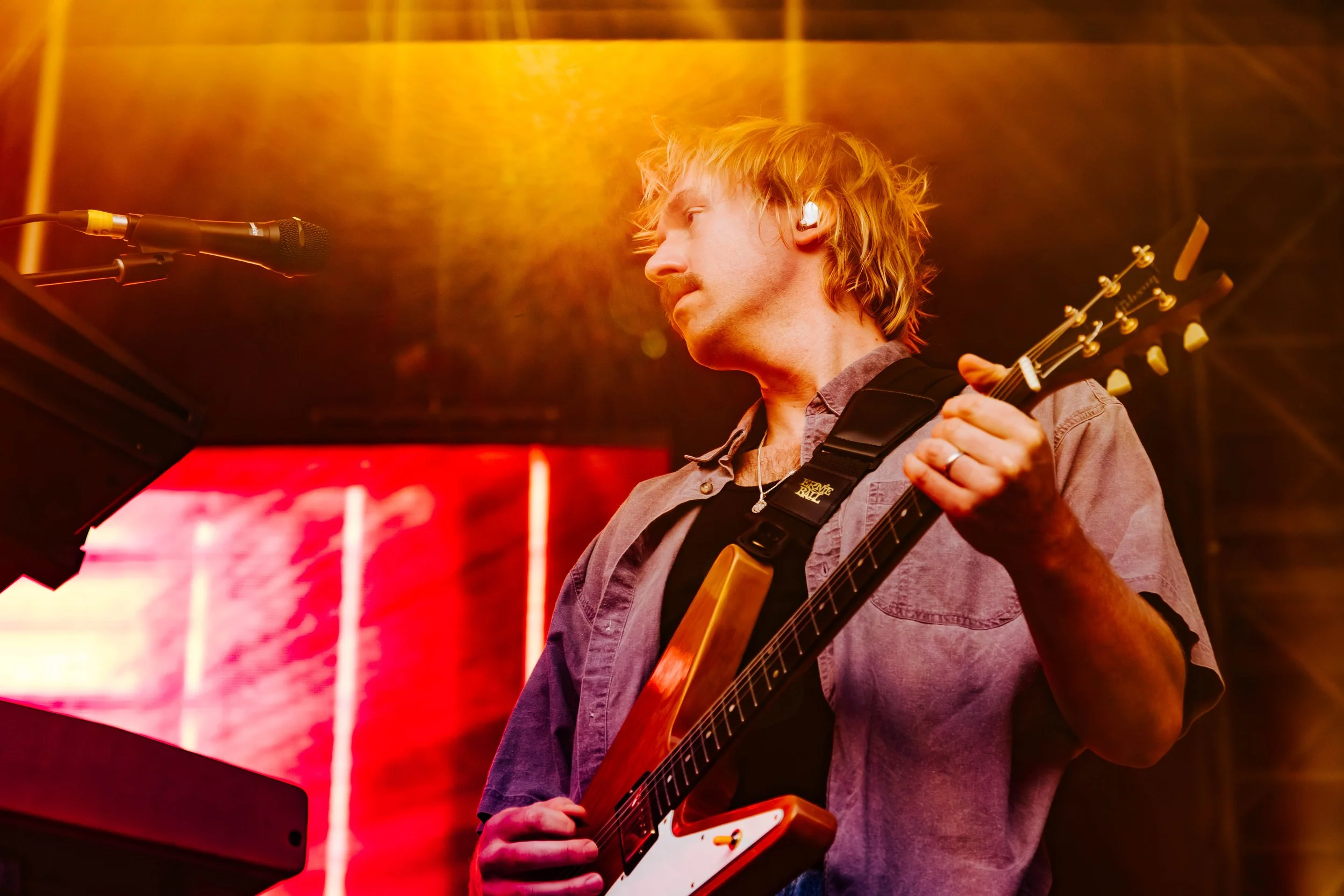 After bragging about getting to play Stu Mackenzie's infamous microtonal guitar, the “Flying Microtona Banana”, guitarist Joey Walker exclaimed “I’m gonna make this banana cry!”.