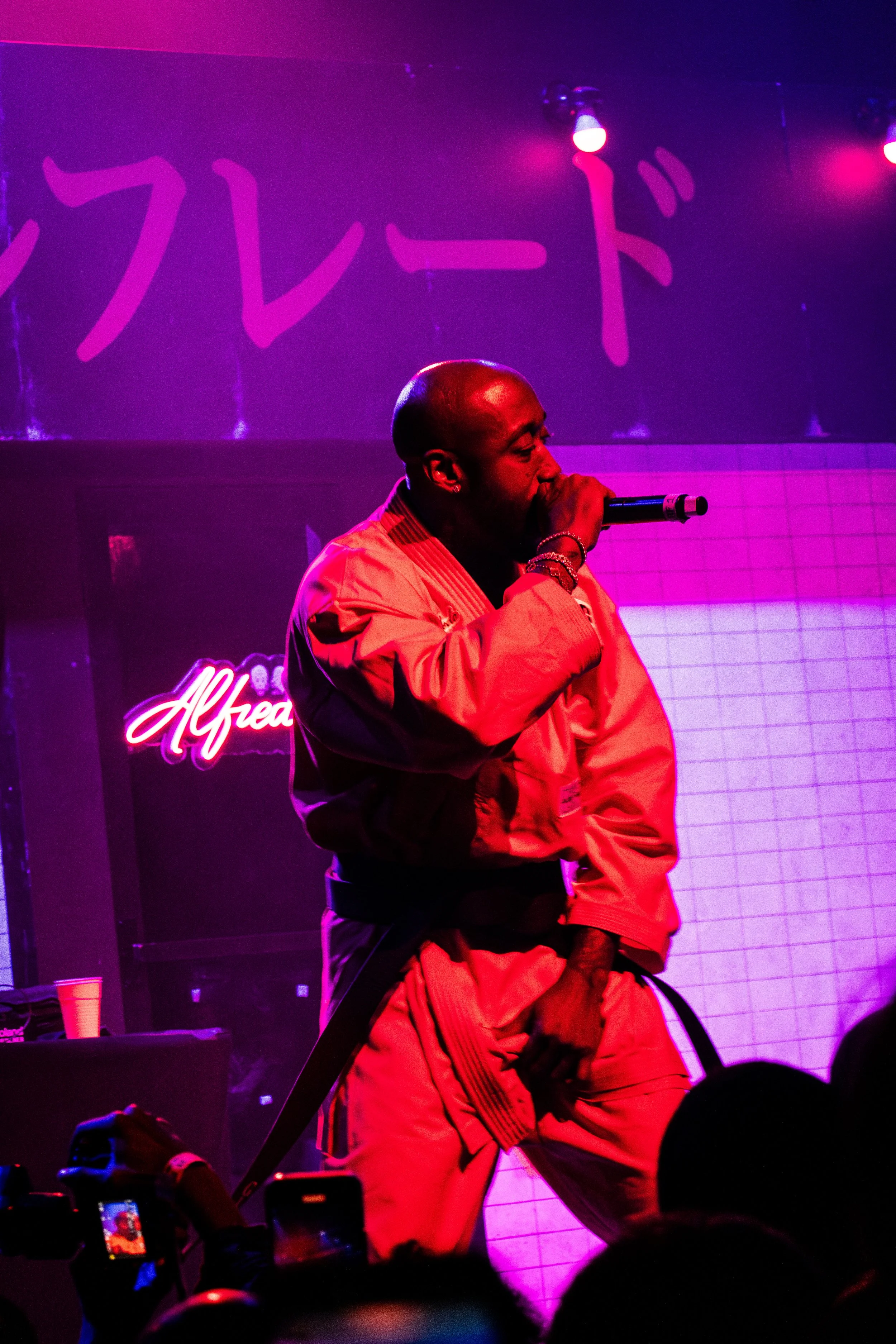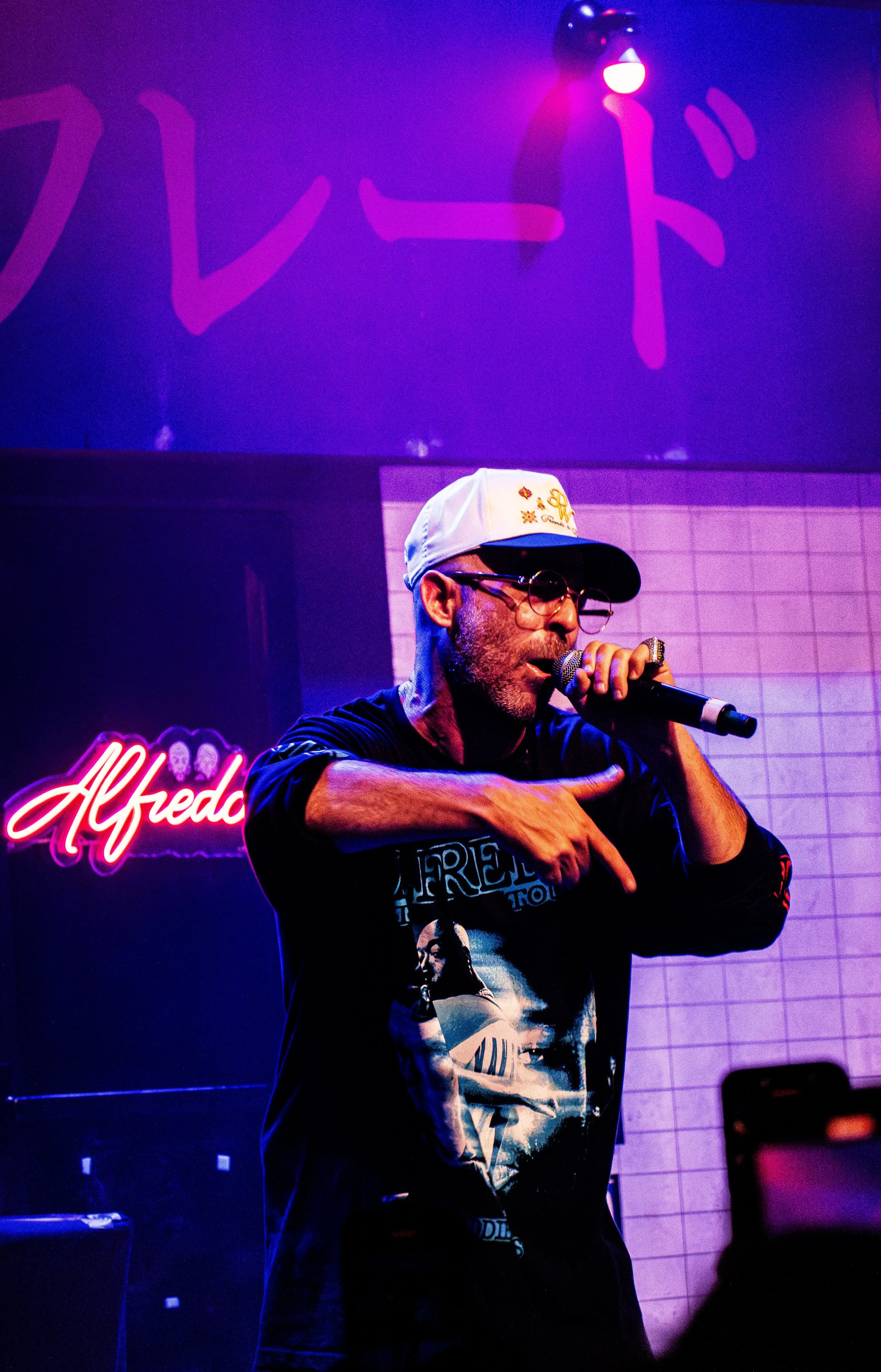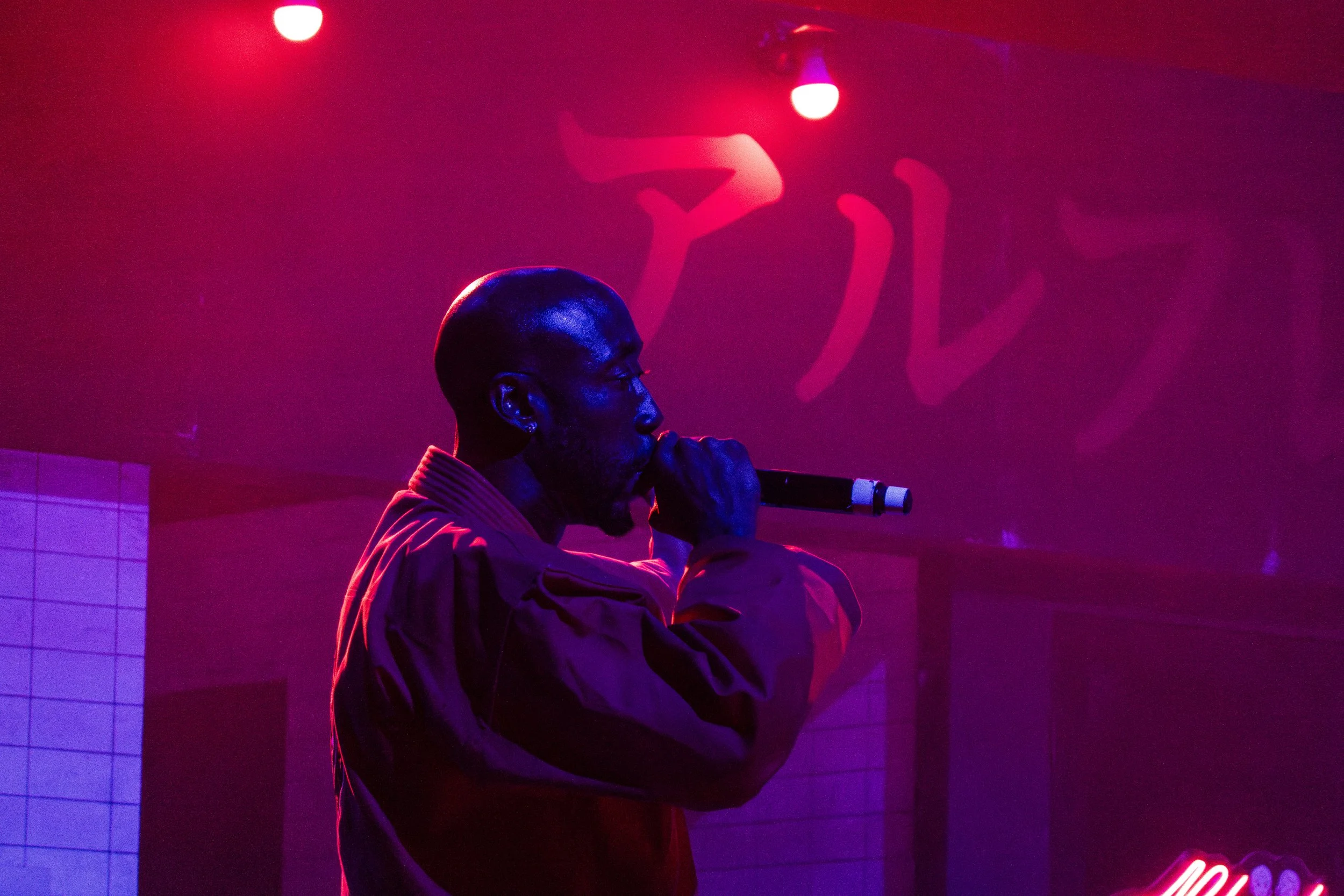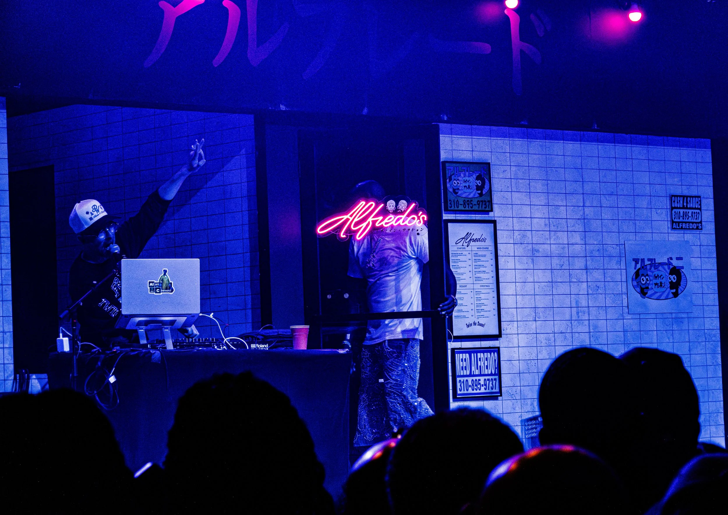 The set design onstage that night reflected the neon-lit, Japanese aesthetic of the duo’s most recent masterpiece collaboration – Alfredo II. The show opened with support from Swedish composer/instrumentalist Sven Wunder, rapper Mavi and Jalen Ngonda. Every artist performed with the backdrop of the “Alfredo’s” restaurant, known from the visuals of the Alfredo II album.
