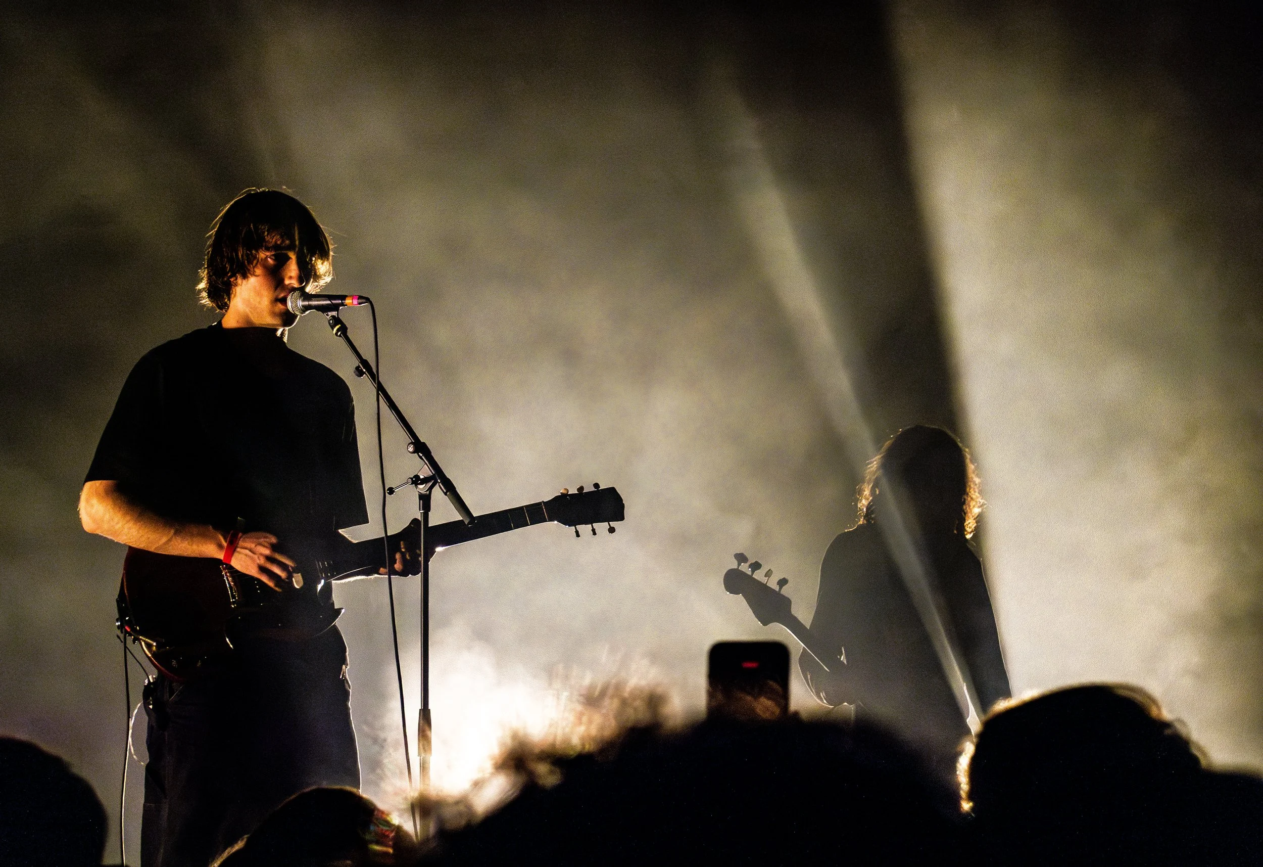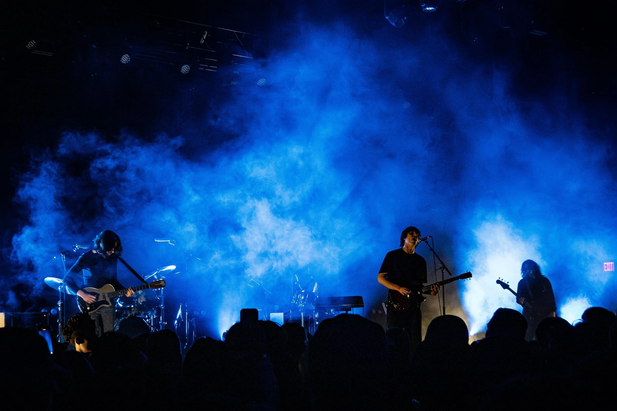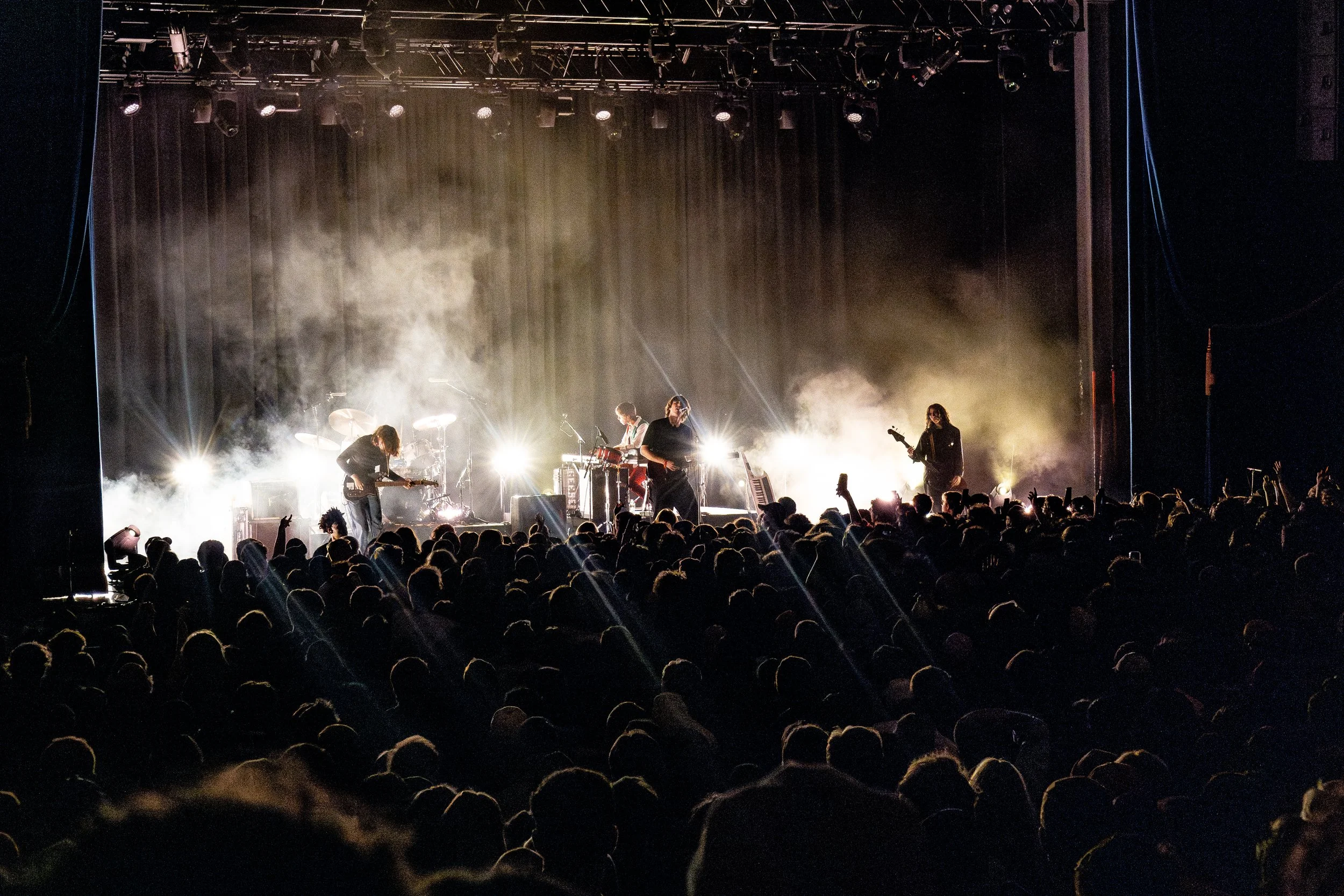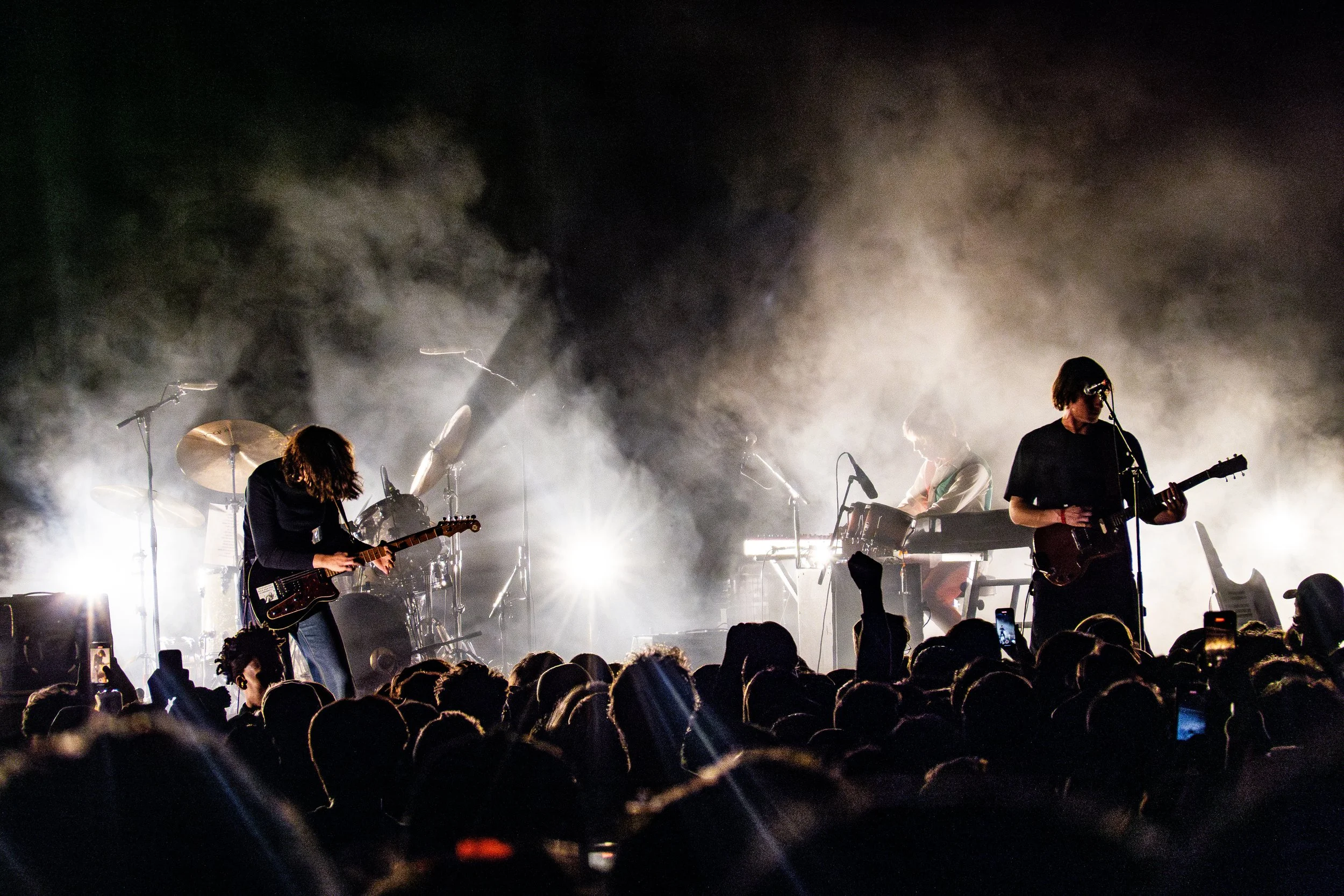 Around 9:40, Geese took the stage, opening with the meditative thump of “Husbands”, and the twinkling charm of “Cobra”, which prompted the audience to assume their role as a backing choir for the rest of the evening. The band significantly backlit during the show, emphasizing their silhouettes. The set was littered with highlights, including the rowdy wig-outs of “2122” and the deafening sing-along of “Cowboy Nudes”.